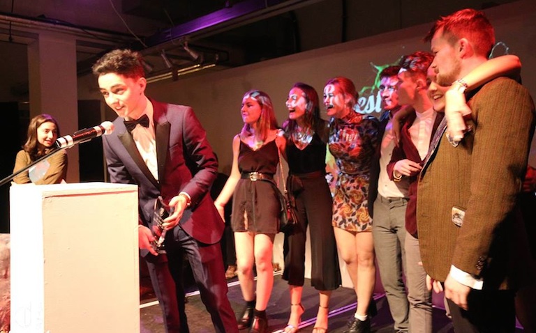 Pictured top: Emmet Farell and his cast collect the award for Best Ensemble. Credit: UCD Dramsoc