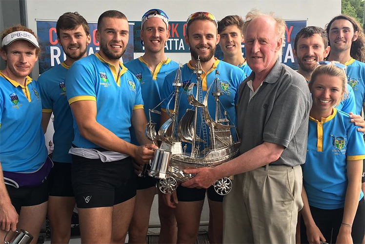 Pictured above: The UCD Boat Club team that won the Leander Trophy in 2017; (l-r) Tiarnan Doherty, Eoin Gleeson, Andrew Griffin, Eoghan O'Connor, Max Murphy (Stk), Ross Thompson, Martin Feeley (Coach), Niall Farrell, Orlagh Reid (Cox), Colm O'Riada