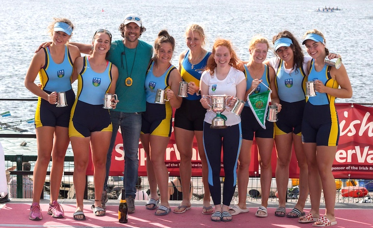 Pictured below: UCD Ladies Boat Club team - winners of National Senior 8+ Championships 2017: Eimear Lambe (Stk), Aileen Crowley, Giuseppe De Vita (Coach), Ruth Gilligan, Sanita Puspure, Síne Ní Fhinn (Cox), Jane Coleman, Daisy Callanan, Vanessa Connolly. Missing team member: Claire Lambe.
