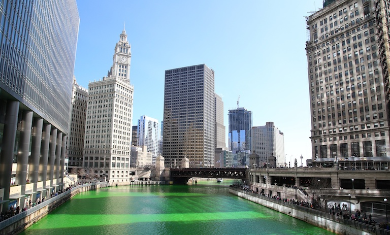 Pictured top: The Chicago River turns green for St. Patrick's Day
