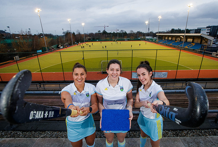 UCD Ladies and Irish international hockey players Lena Tice, Clodagh Cassin and Hannagh McLoughlin