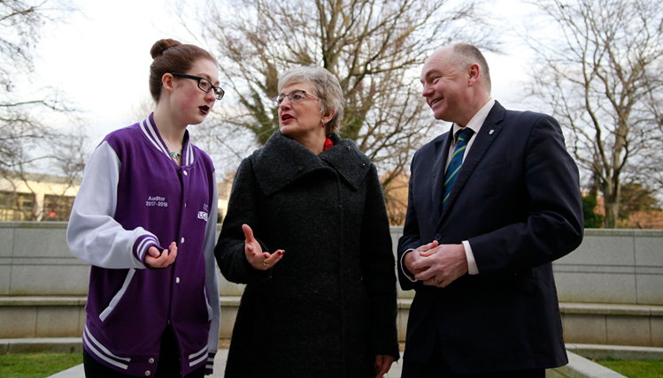 Pictured at University College Dublin (l-r): Ari Shiel, Auditor, UCD LGBTQ+ Society; Katherine Zappone TD, Minister for Children and Youth Affairs; Prof Andrew Deeks, President, UCD