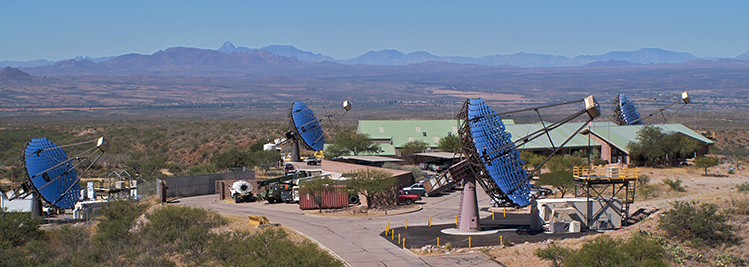 The (opens in a new window)VERITAS (Very Energetic Radiation Imaging Telescope Array), located at the Smithsonian Institution’s (opens in a new window)Fred Lawrence Whipple Observatory in southern Arizona, has detected gamma rays in the vicinity of a supermassive black hole some four billion light years away from Earth.