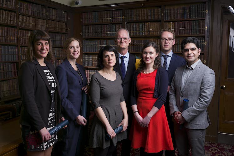 Pictured above: Dr Laia Comas Bru; Dr Ailise Bulfin; Dr Lola Yeasares; Professor Michael Peter Kennedy, President of the Royal Irish Academy; Dr Cliodhna O’Connor; Dr Mark Coen; Dr Abdollah Malekjafarian; missing from the group of UCD Charlemont grant recipients are Dr Alexander Dukalskis and Dr Colin Byrne