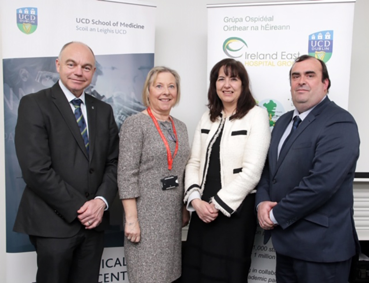 Professor Andrew Deeks, President UCD, Lily Byrnes, General Manager of Wexford Regional Hospital, Mary Day, CEO of Ireland East Hospital Group, and Professor Peter Doran, Director at UCD Clinical Research Centre