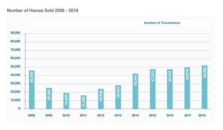 The new data shows that 55,000 homes were sold in Ireland last year, an increase of 8% on 2017.