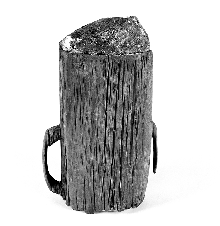 A piece of bog butter found in Tumgesh, Co. Mayo, deposited in a wooden mether. Image copyright of the National Museum of Ireland