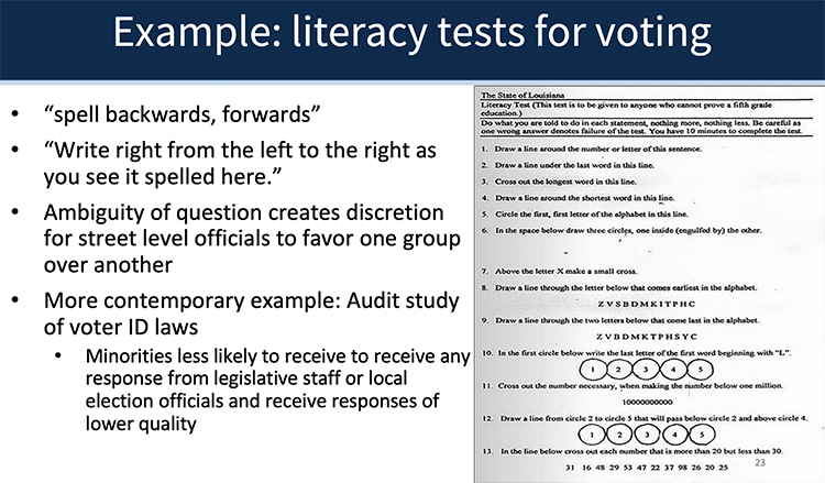 Further warning of the dangers of administrative burden, an example of it being used to legally deny American citizens their right to vote was presented.