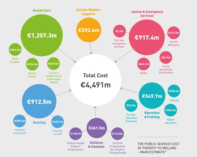 It found that when housing support and social welfare assistance was combined with the additional spending required to deal with education, justice, and health outcomes associated with poverty the cost to the State was more than the total spent on housing, justice, transport and agriculture.