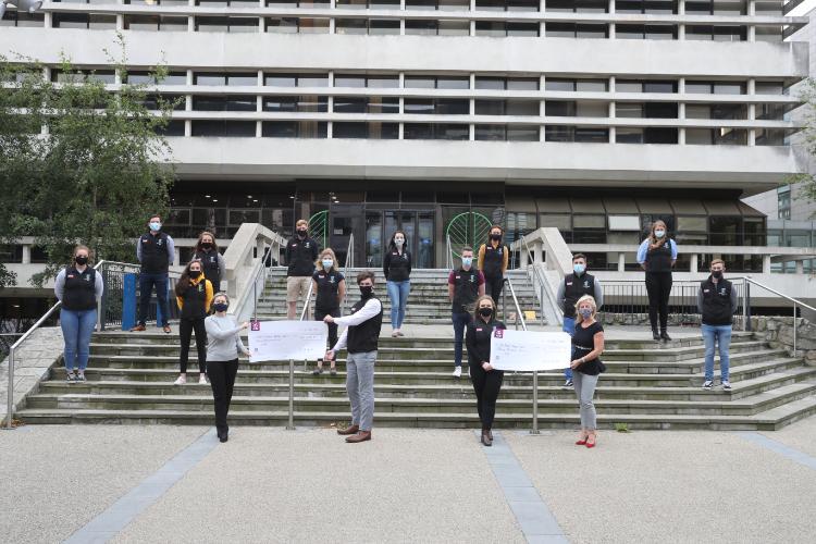 Two cheques totalling €30,000 each were presented to representatives from (opens in a new window)St John’s Wards Crumlin Hospital and Teac Tom ((opens in a new window)The Thomas Hayes Trust) by members of the AgSoc Committee outside the UCD Agriculture and Food Science Centre.