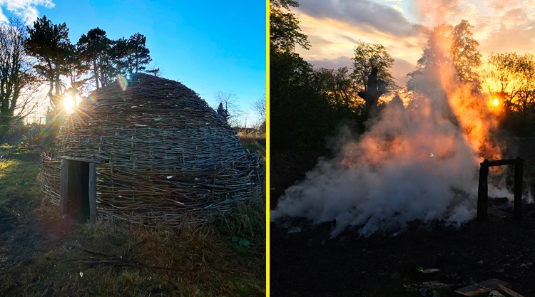 The roundhouse, which has yet to be thatched, is bigger than the previous one destroyed by fire in May 2019 – featuring a larger floor space, with enough space for two beds, and will be roofed using heather, straw or reeds.