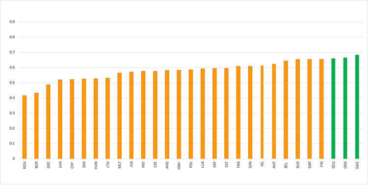 Top best performers are Sweden, Denmark, and Germany while the bottom three are Greece, Bulgaria, and Romania. Ireland ranks 9th in the 28 nation index.
