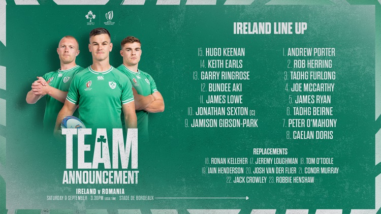 “As coaches, we are pleased with our 33-player selection and believe we have chosen the right group to represent Ireland in France. It is a hugely exciting time for the group as we prepare to depart for Tours and finalise our preparations for our Rugby World Cup opener against Romania,” said Head Coach Andy Farrell.