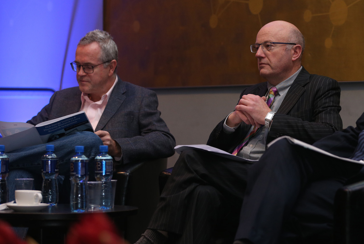 Pictured top: Professor Mark O’Malley, UCD School of Electrical and Electronic Engineering and Professor Mark Ferguson, Director General, Science Foundation Ireland and Chief Scientific Adviser to the Government of Ireland, at the launch of the Energy Systems Integration Partnership Programme (ESIPP) at UCD; and below right, Damien English TD, Minister for Skills, Research and Innovation also speaking at the launch.