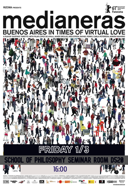 This time, the film will be: Sidewalls (Spanish: Medianeras) a 2011 comedy-drama film written and directed by Gustavo Taretto.