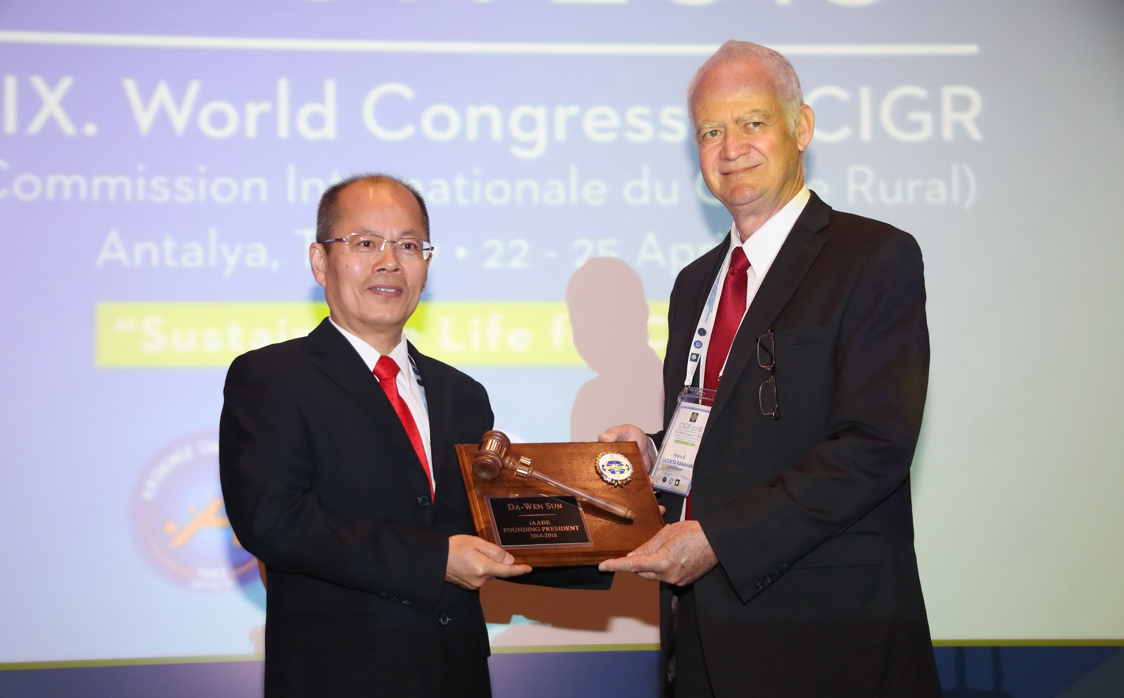 At the 19th World Congress of CIGR in 2018, Professor Fedro S. Zazueta, the CIGR Secretary General, presented Professor Da-Wen Sun with the Gavel of the iAABE Founding President