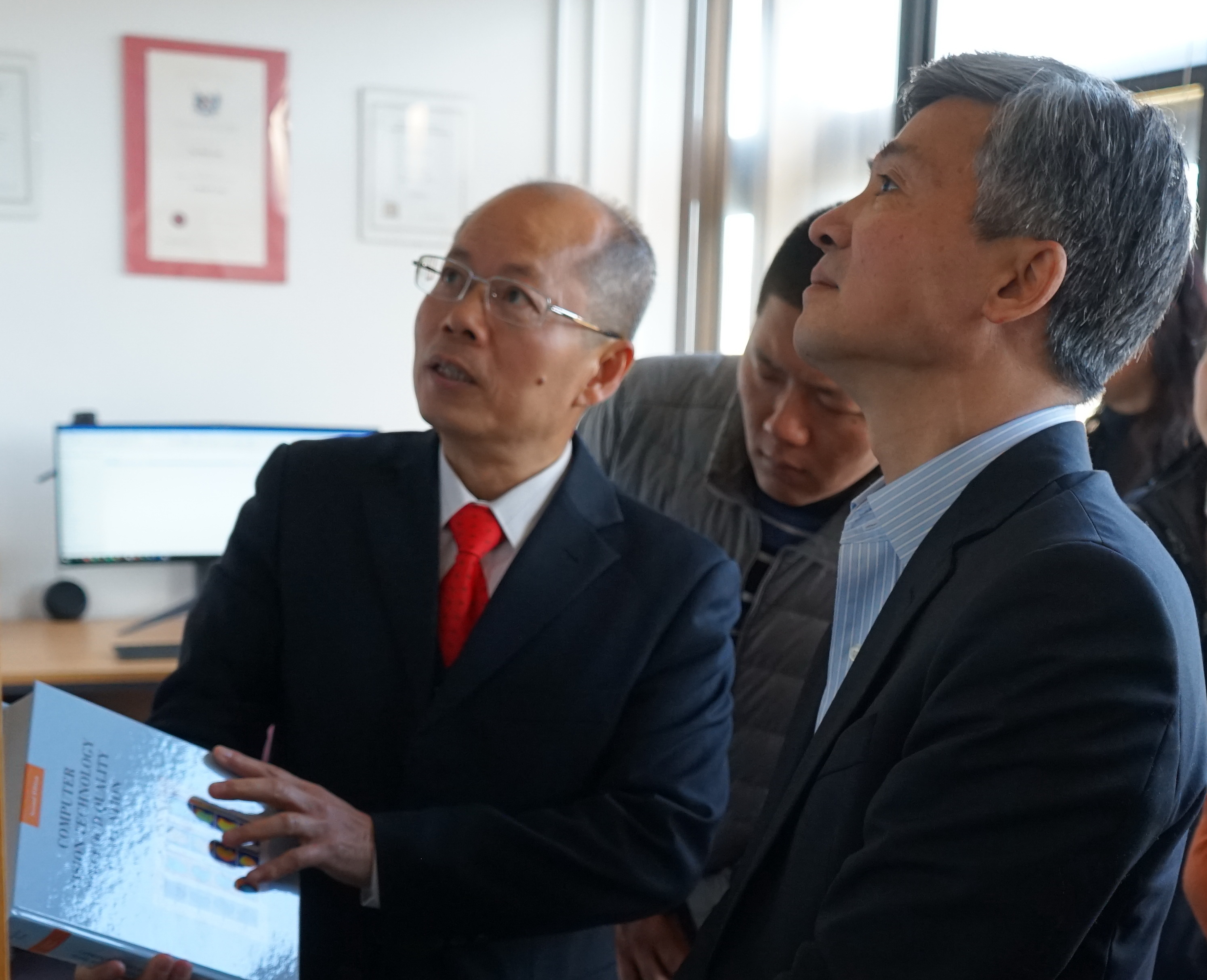 On 26 October 2019, a 10-member delegation from the Chinese Embassy in Ireland led by Chinese senior diplomats His Excellency Ambassador He Xiangdong and his wife Madam Xia Lining, Counsellor Xue He, First Secretary Hong Jiqing and First Secretary Zheng Dawei visited UCD School of Biosystems and Food Engineering. The event started with a research seminar followed by a technical tour to Professor Da-Wen Sun’s laboratories (UCD Food Refrigeration and Computerised Food Technology) and experimental demonstrations.