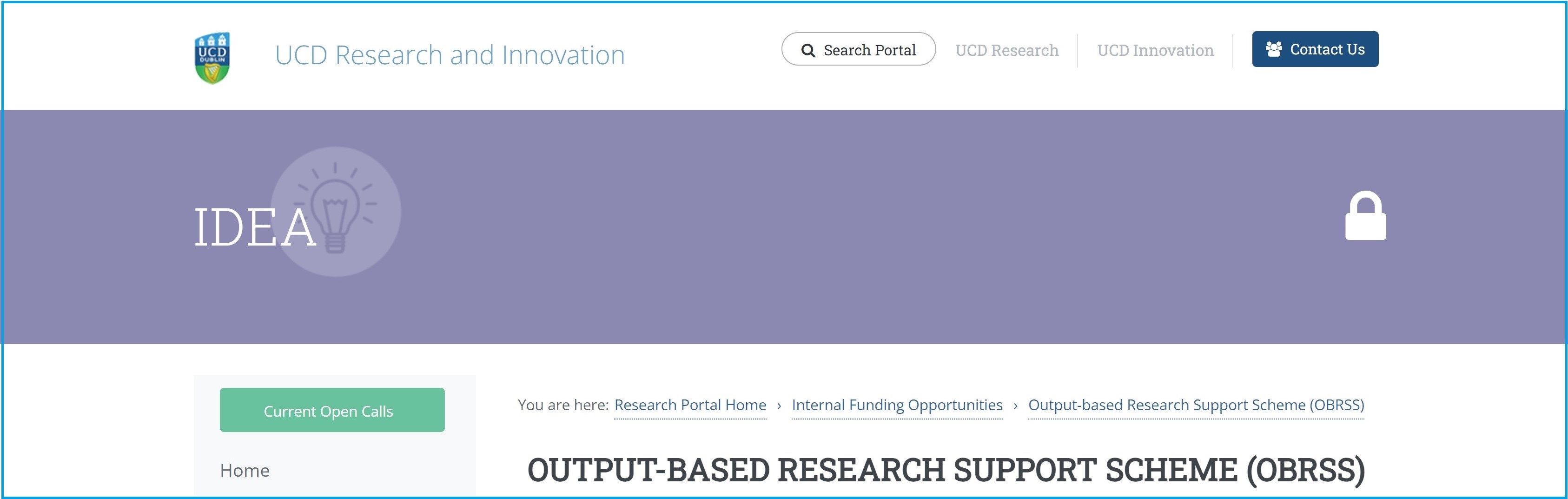 Research activity is critical to UCD's reputation as a leading international university. UCD recognises that commitment to excellent research builds UCD’s reputation, and therefore UCD has developed the Output-Based Research Support Scheme (OBRSS) to disburse research support funds to faculty based on their research outputs, as captured through publications and PhD supervision.