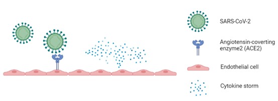 Let’s start by understanding why cytokine storms are of interest in the context of SARS-CoV-2 infection. SARS-CoV-2 infection is accompanied by enhanced levels of pro-inflammatory cytokines in COVID-19 patients’ bodies. The excessive release of cytokines is called a cytokine storm [1]. Keeping this in mind, cytokine storm is notorious for causing endothelial dysfunction, for instance, damage to endothelial cell-cell junctions, endothelial inflammation, senescence, etc[2]. The interior surface of the blood vessels and lymph vessels is composed of Endothelial Cells (ECs). Damages to the ECs cause severe complications (i.e., acute respiratory distress syndrome (ARDS), coagulopathy, multi-organ failure, and even death) in COVID-19 patients [3, 4].