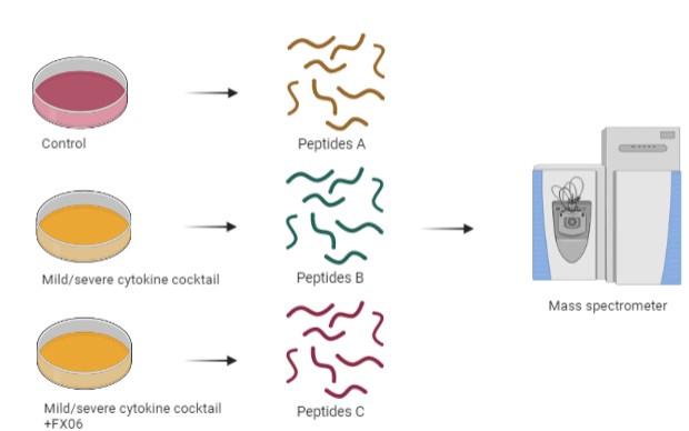 In the next two years of my PhD, I will continue investigating cell death and immunological changes (expression levels of surface markers) of endothelial cells in the situation of SARS-CoV-2 inflammatory status and FX06 treatment via flow cytometry analysis. Some markers are related to endothelial integrity, while others are associated with adhesion and migration processes. Flow cytometry analysis would give me a more detailed and accurate view of how cells behave. In addition, we would like to continue with mass spectrometry analysis by adding more time points (i.e., FX06 treatment of 5 minutes, 20 minutes, 2 hours, and 6 hours). I wish to thoroughly examine the behaviour of FX06 against COVID-19-triggered cytokine storm.