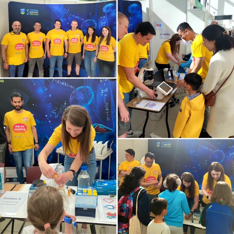 The summer started on a high as SBI took part in the annual UCD Festival on Saturday, 11 June. Ten volunteer students, researchers and operations team staff manned an interactive booth in the Science Hub of the O’Brien Centre for Science while also offering guided tours of the SBI labs across the road. This was the first on-campus Festival since 2019 and the crowds did not disappoint. The SBI booth, titled “What does a systems biologist do?” proved to be a popular destination with hundreds of visitors of all ages stopping by to try out the microscope, pipettes and computer simulation on display. According to festival-goers, the SBI booth was one of the last to pack up, as the queue continued right up to 6 o'clock!