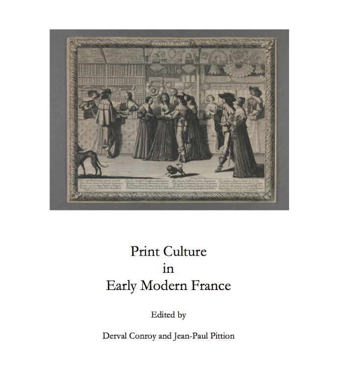 Copies of Print Culture in Early Modern France, special issue Irish Journal of French Studies, no. 16 (2016) can be procured directly from Dr Derval Conroy ((opens in a new window)derval.conroy@ucd.ie).