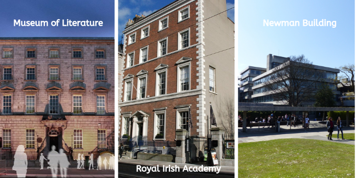 On Friday afternoon the workshop and panel 1 (2-5.30pm) will be held at the new Museum of Literature in Ireland, located in the city centre at UCD Newman House, 86 Stephens Green. see (opens in a new window)https://moli.ie/