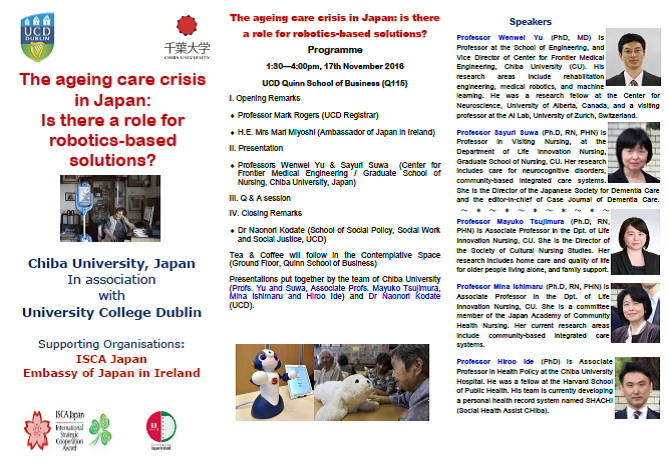 Presented by Chiba University of Japan in association with University College Dublin, supported by the ISCA Japan and the Embassy of Japan in Ireland