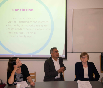 Dr. Ala Sirriyeh (Keele Univeristy), Professor Ravi Kohli (University of Bedfordshire) and Teresa Blake Senior Counsel and member of the Irish Human Rights and Equality Commission