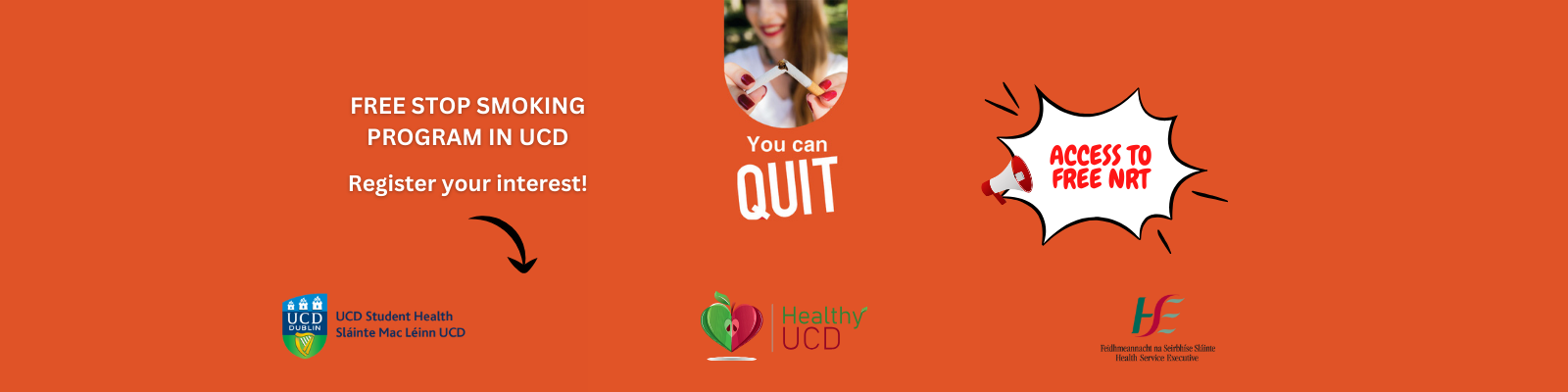 Healthy UCD, in partnership with the HSE and UCD Student Health, are delighted to continue delivering theFree QUIT Programmeon the Belfield Campus from September 2025.  The programme is open to ALL on campus - students and staff - and is being delivered in the UCD Village for the whole academic year.Register your interest below and we will contact you to arrange your appointment.