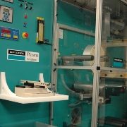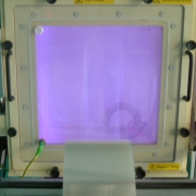 Amongst the advantages of atmospheric plasmas compared to vacuum plasma treatments, is their ability to carry out continuous rather than batch processing, processing times are shorter and equipment costs are reduced. Coating deposition studies are carried out using a reel-to-reel atmospheric plasma system that was developed in Ireland by Dow Corning Plasma Solutions. Uniquely, the deposited nm thick coatings retain the chemical functionality of the original precursors, which are nebulised into the plasma. The coatings are applied using the LablineTM shown below. The research to date has correlated how plasma deposition parameters influence coating chemistry, adhesion, thickness and morphology. Coatings have been deposited onto polymers from a large range of precursors including PDMS, TEOS, OMCTS, PLA and PEG.