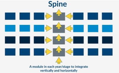 - Development of a ‘spine of core module(s)’, one in each stage or semester, whose assessment draws on previous and concurrent modules in the programme