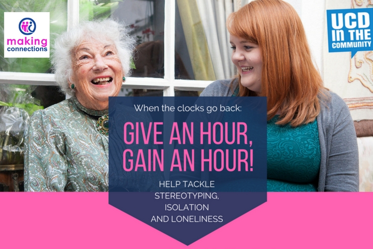 UCD in the Community were delighted to collaborate with Making Connections on their (opens in a new window)Give an Hour, Gain an Hour campaign in October 2017.