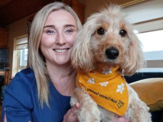 Congratulations to Yvonne Drought whose information leaflets for cancer patients who own pets or livestock were recently published by the Irish Cancer Society. Yvonne is a graduate of our Veterinary Medicine (MVB) programme and is currently working as a vet in Carrick-on-Suir, Co Tipperary. Yvonne was diagnosed with ovarian cancer during her final year in UCD and at the time, one of her biggest concerns about treatment was looking after her dog, Rufus, whilst undergoing chemotherapy. Yvonne was worried about who would mind Rufus, and whether or not it was safe for her to do so. ‘I realised there was so much information out there about coping with cancer, but nothing about looking after your pets whilst going through treatment, so I began researching myself, and that’s where the whole idea stemmed from,’ she says.