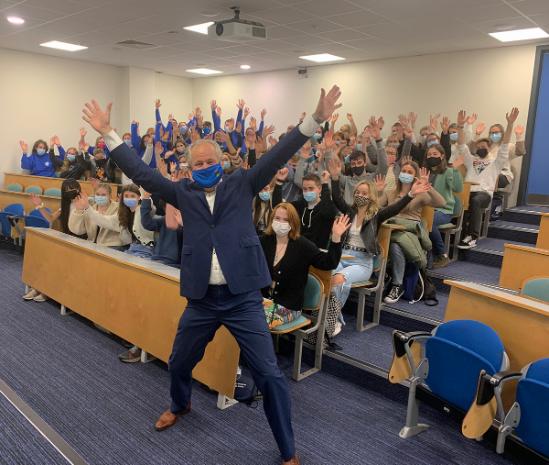 Pictured is the Dean, Professor Michael Doherty with 1st year Veterinary Medicine students.