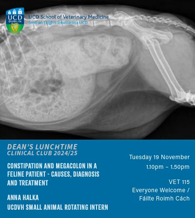The final Dean's Lunchtime Clinical Club this term takes place on Tuesday 19 November with a presentation from Anna Halka, UCDVH Small Animal Rotating Intern.