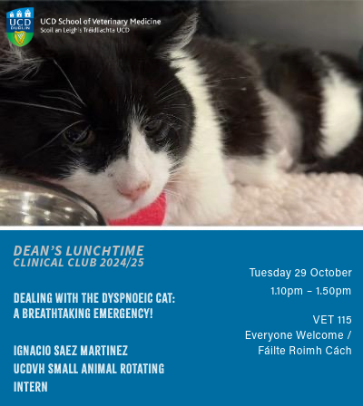 The Dean's Lunchtime Clinical Club continues on Tuesday 29 October with a presentation from Ignacio Saez Martinez, UCDVH Small Animal Rotating Intern.