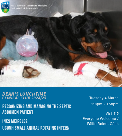 The Dean's Lunchtime Clinical Club concludes for this academic year on Tuesday 4 March with a presentation from Ines Meireles, UCDVH Small Animal Rotating Intern.