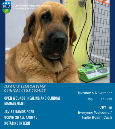 The Dean's Lunchtime Clinical Club continues on Tuesday 5 November with a presentation from Javier Ramos Pozo, UCDVH Small Animal Rotating Intern.
